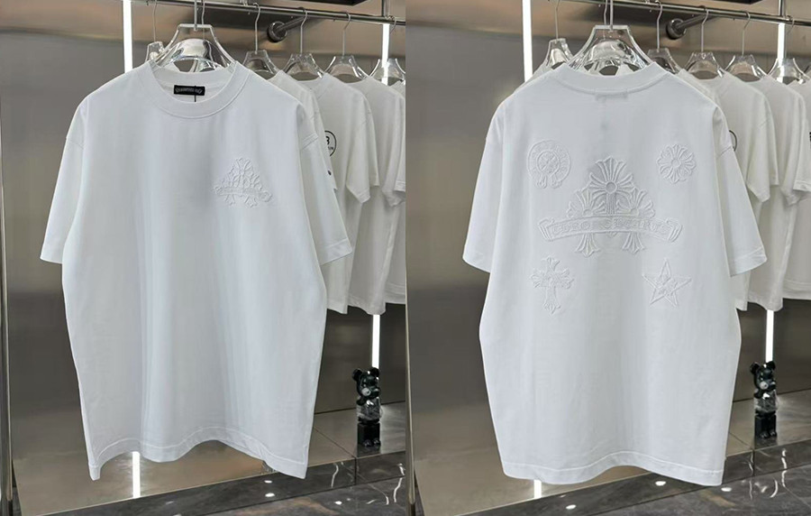 • 남녀공용 크롬HA츠 톤온톤 엠보 로고 반팔 티셔츠