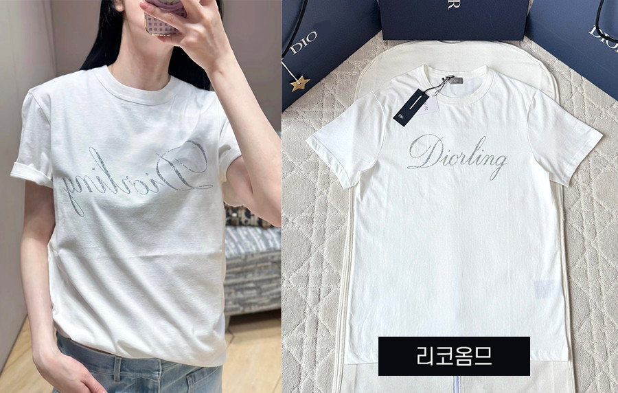 남녀공용 D올 Diorling 글리터 크루넥 반팔 티셔츠 (1:1 HIGH PREMIUM) > 1/2 TOP