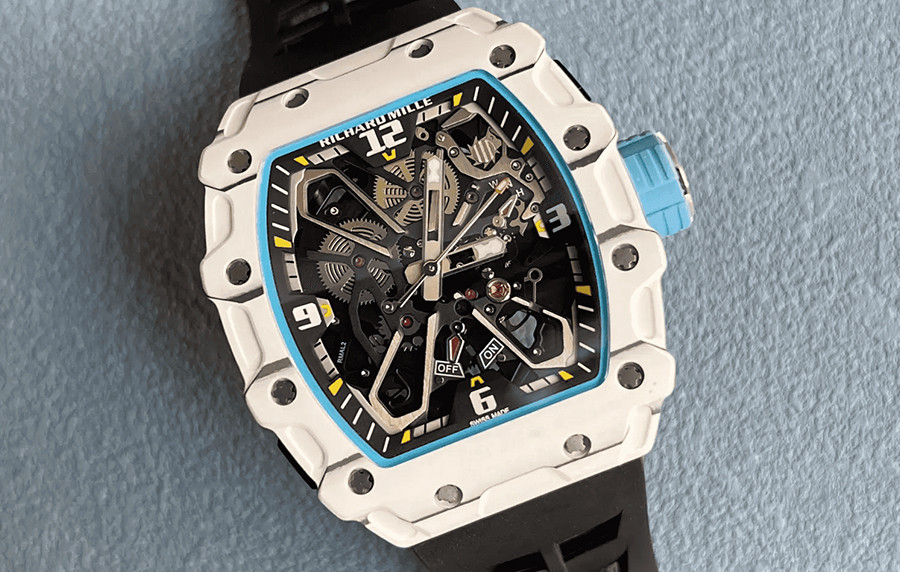 리차*밀 RM35-03 라파엘 나달 TPT 카본(화이트&블루) 블랙 러버밴드 43mm×50mm 1:1 최상급 (싱크 98.9%)